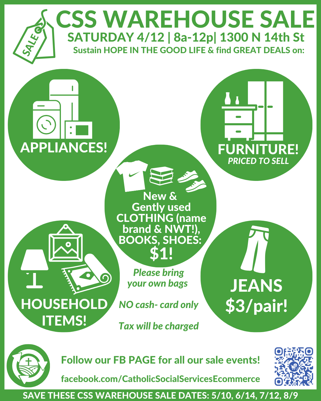 Furniture is priced to sell. All sales go to support CSS Programs and clients throughout Southern Nebraska. NO CASH. Card ONLY + 7.25% Lincoln Sales Tax will be applied. NO HOLDS. NO DELIVERIES.